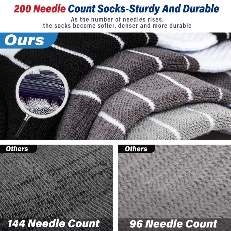 - High Performance Socks - Our 200 needle knit socks achieve the highest levels of quality and durability. While others use 96, 144 needles, we use 200 needles technology to benefit you with denser and lighter socks which makes it the best running socks, gym socks, golf socks and workout socks for men and women athletes