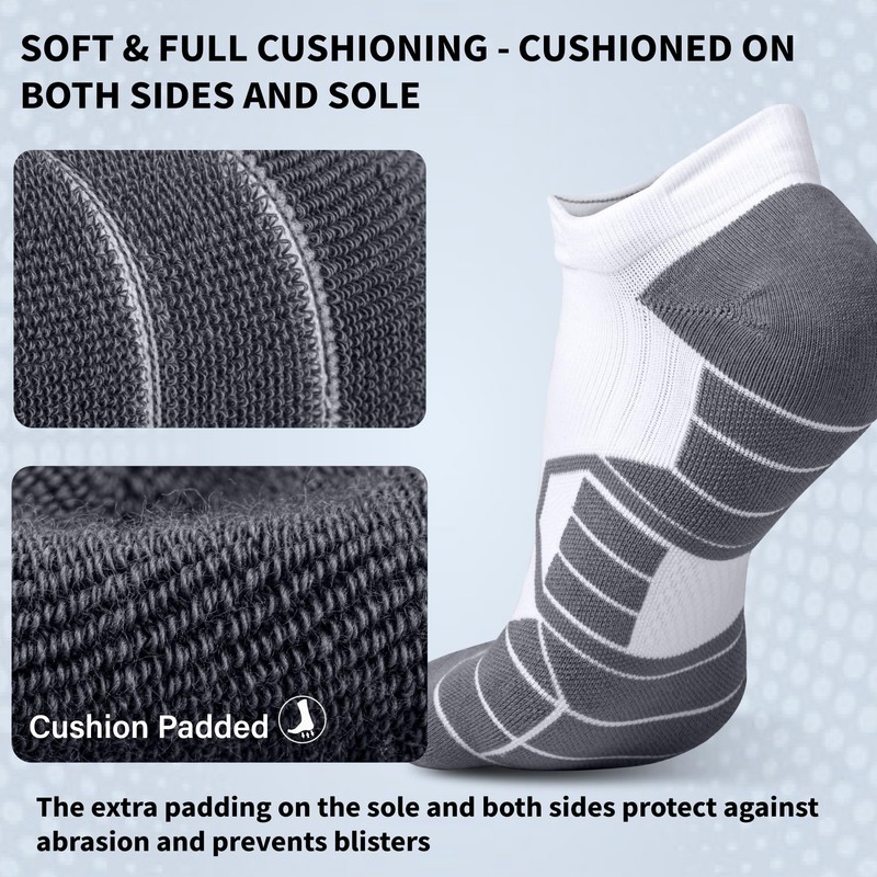 - Extra Cushion Padded Socks - Experience the most comfortable low cut socks you’ll ever have because we added extra-thick pads so you’ll have best feeling in your cushioned tennis socks. The extra cushion on the heel keeps the sock from falling down, while the seamless toe construction makes your feet no blisters