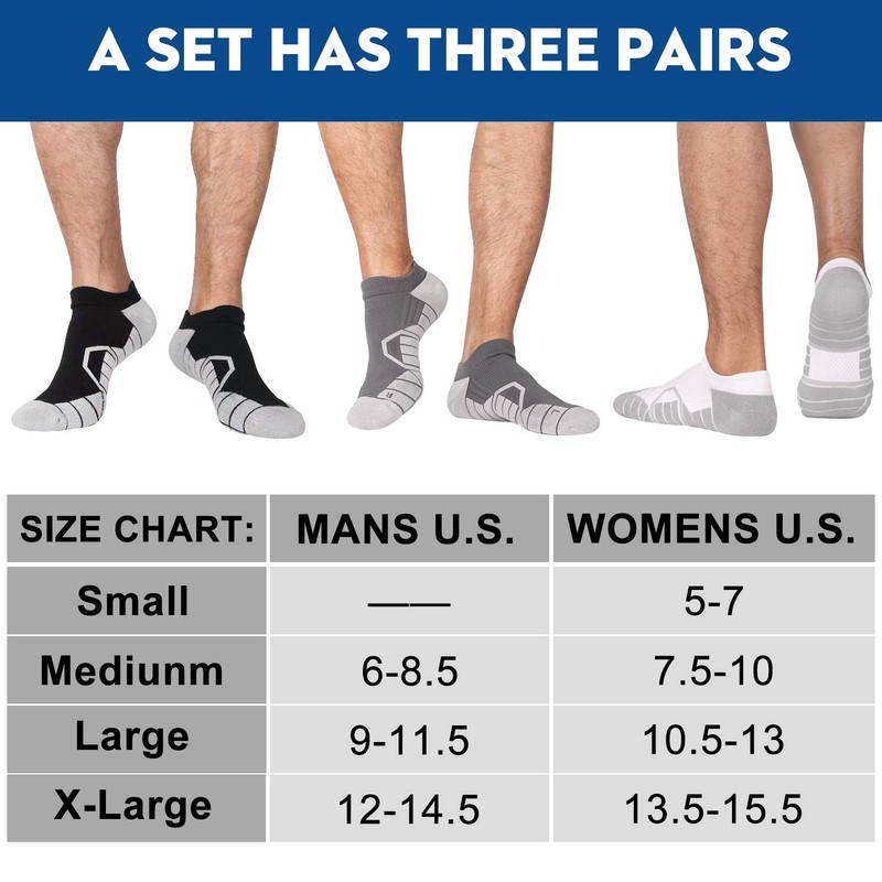 Hylaea No Show Athletic Running Socks for Men & Women Cushioned Compression No Show Socks (3 Pairs Black Grey White, Small)