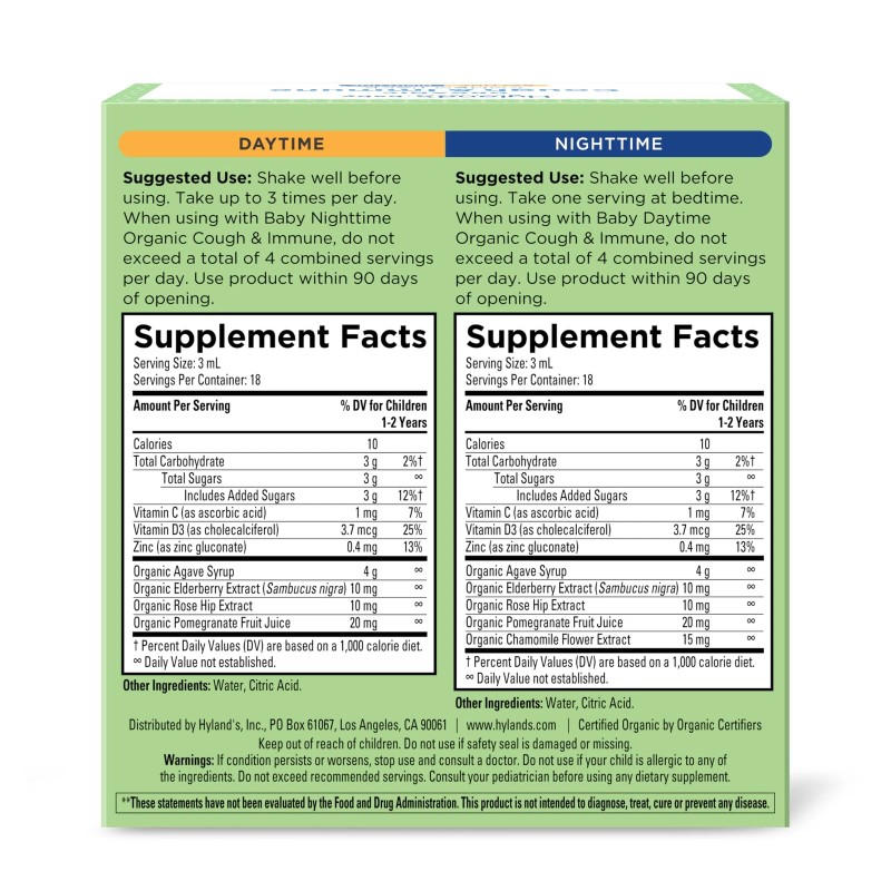 - Daytime & Nighttime Formulas, Certified USDA Organic, with Agave, Elderberry, Rose Hip and Pomegranate, and Chamomile (Nighttime)