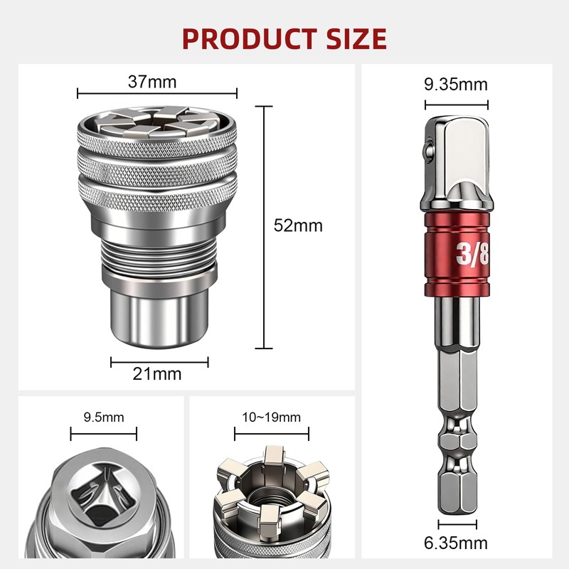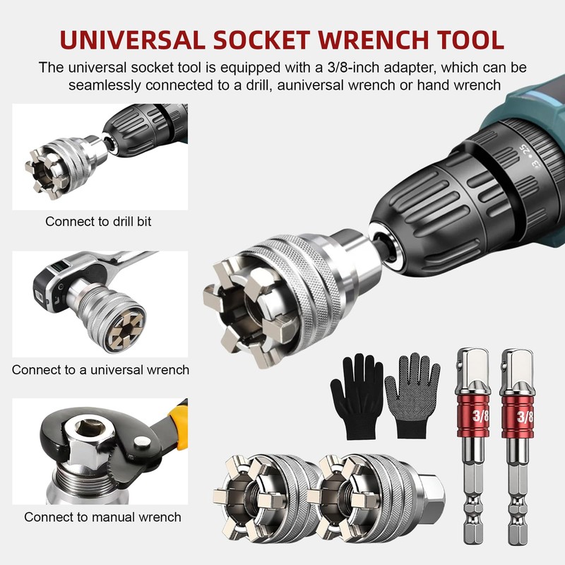 - 【Wide Application】The universal socket tool is equipped with a 3/8-inch adapter, which can be seamlessly connected to a drill, cordless drill or hand wrench, making it easy to handle whether it is home repairs or professional car maintenance. Customers can enjoy 24/7 online support and lifetime technical support. If you have any questions, please feel free to contact us. Effective communication ensures that the problem can be better solved.