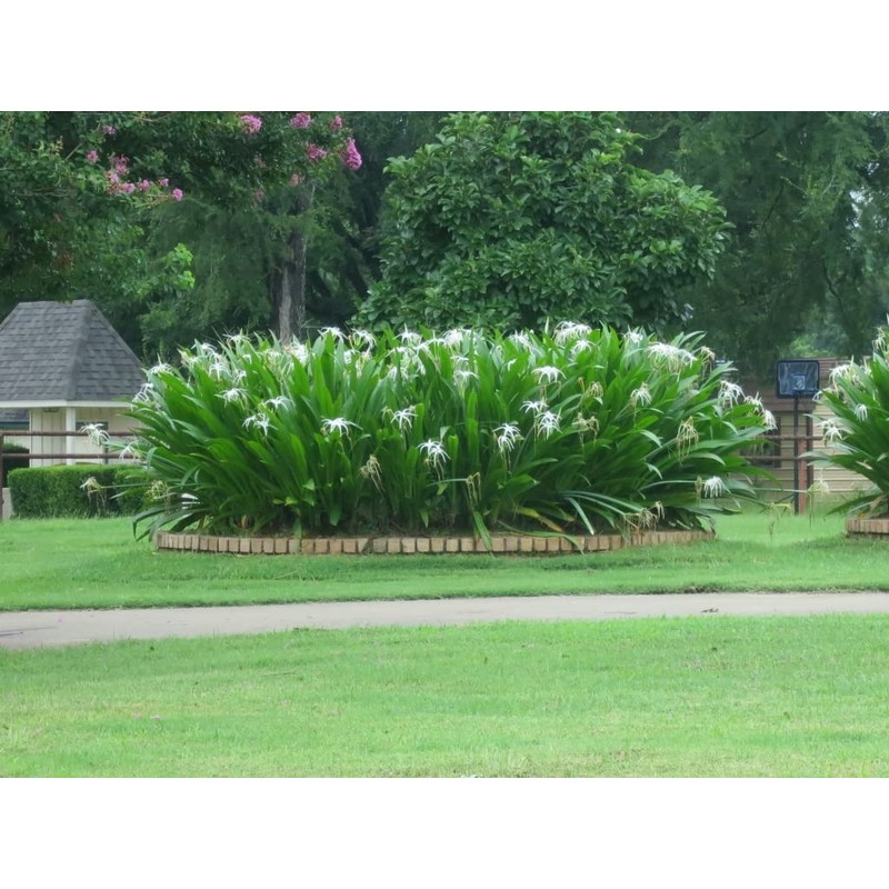 • The Hymenocallis 'Tropical Giant' is often called a 'White Spider Lily' by many in the southern United States. It is called this because the bloom from above looks like a white spider with 6 inch legs