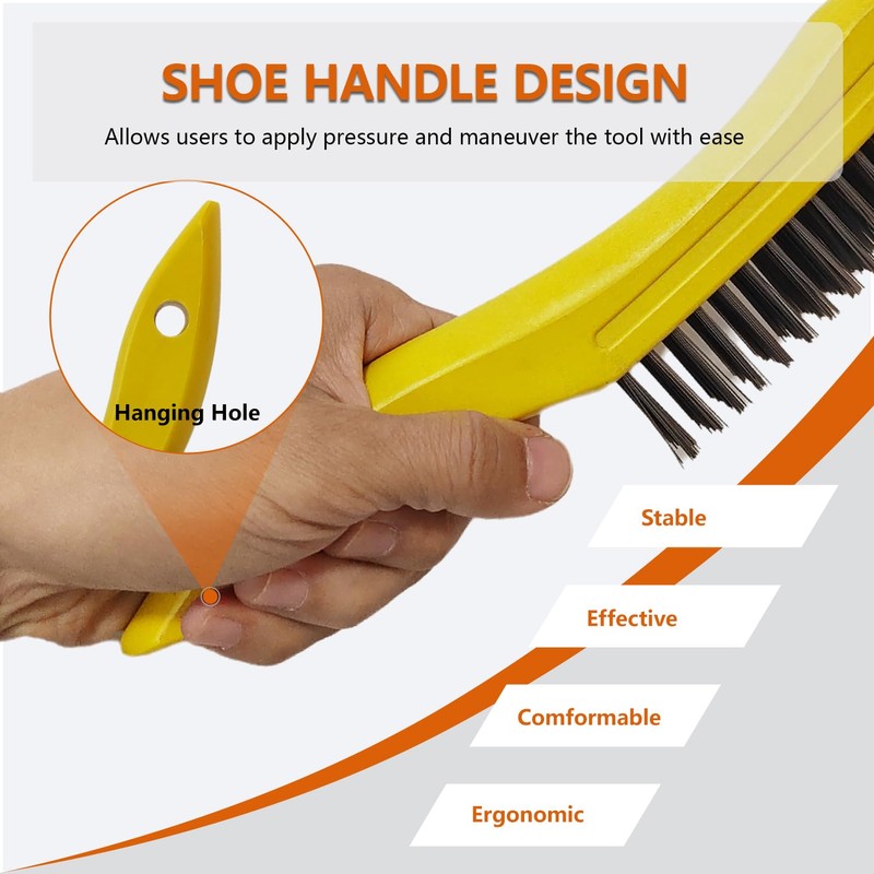 - Versatile Cleaning Tools: This 3-pack of wire scratch brushes features 4-row heavy-duty steel bristles perfect for removing paint stains, rust, corrosion, welding slag, and more.