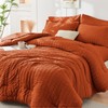 HYMOKEGE Burnt Orange California King Comforter Set Seersucker 7 Pieces, All Season Luxury Bed in a Bag for Bedroom, Bedding Set with Comforters, Sheets, Pillowcases & Shams