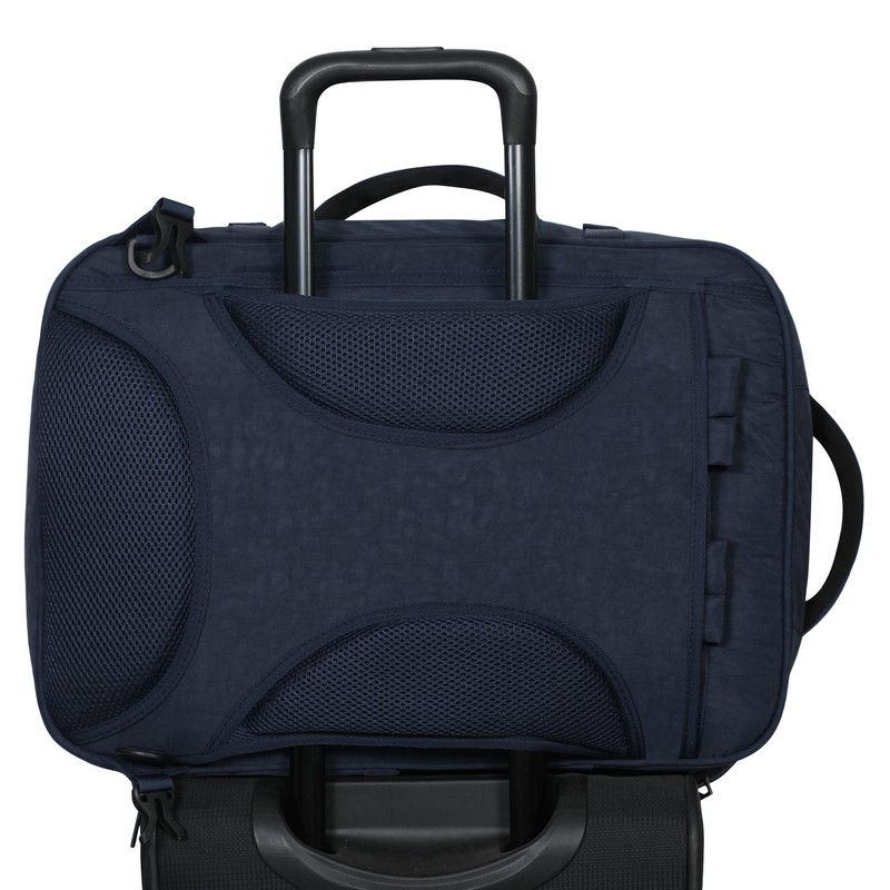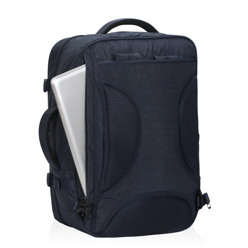 - 4 carrying options in 1 carry on backpack, back trolley pannel for securely stacking on wheeled luggage; dual hide-away contoured backpack straps, top and side carry padded handles; padded back panels with breathable mesh for added comfort