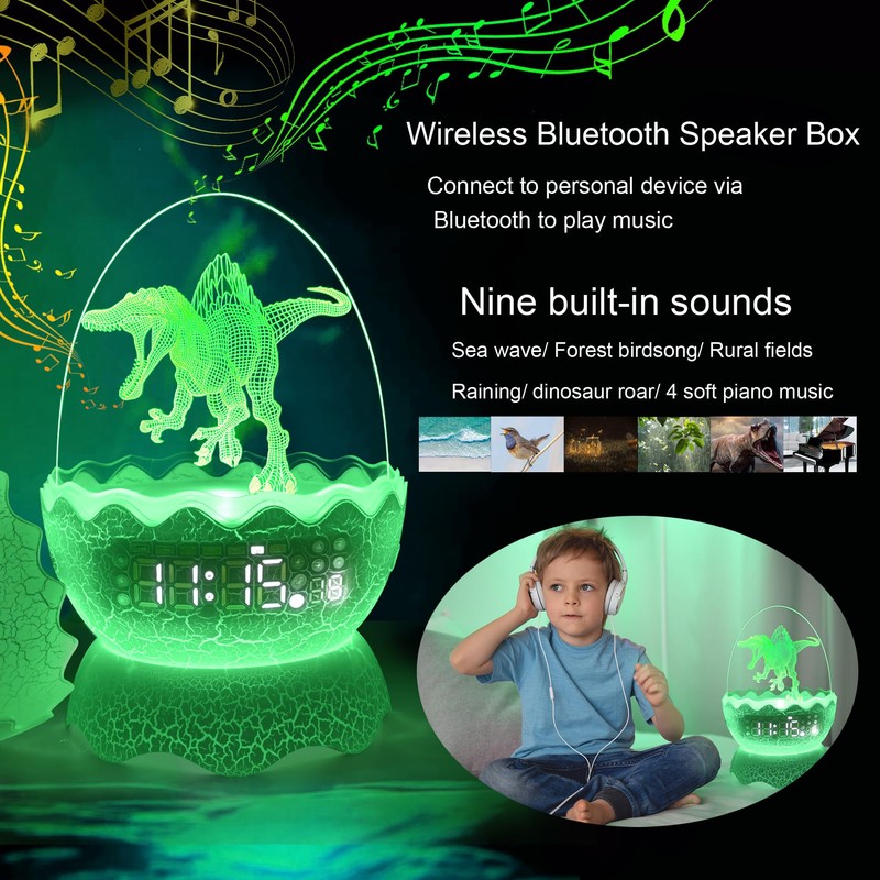 HYODREAM Dinosaur Egg Digital Clock | Alarm Clock with Night Light | Lullaby Sound Machine |Bluetooth Speaker, Cool Dinosaur Decor Lamp & Unique Gift for Kids/Boys/Girls