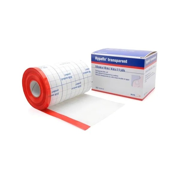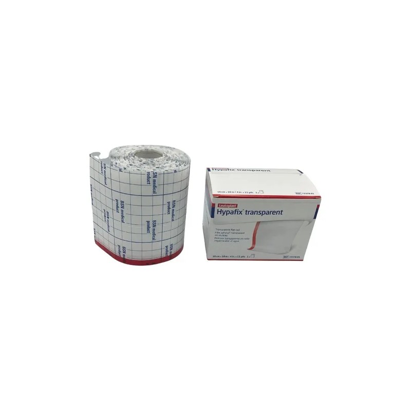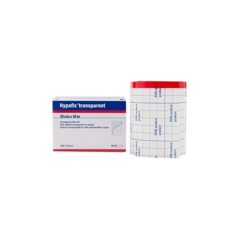 Hypafix Apósito 10cmx10m Transparente Lámina Elástica Autoad proporciona una cobertura completa del vendaje, reduciendo el riesgo de contaminación. Su conformabilidad permite una fácil aplicación alrededor de articulaciones y contornos del cuerpo, otorgando libertad de movimiento. La cinta es permeable al aire y la humedad, lo que ayuda a prevenir la maceración. Es una lámina autoadhesiva de tejido sin tejer en rollo, fabricada con material de poliéster blanco y recubierto con adhesivo hipoalergénico.
