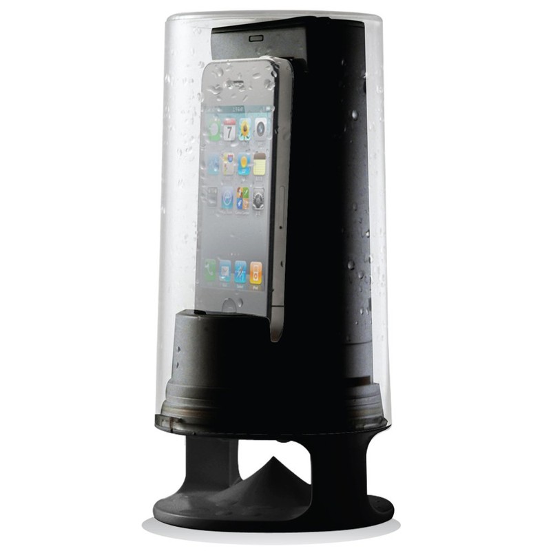 Enjoy stereo sound quality from this cool, pod-shaped speaker unit that protects your device from water! With a secure water-resistance seal and steady base, you can set up four speaker in your bathroom or in your kitchen without worrying about exposing your device to water. You can adjust the volume from the shell and this speaker works with most 3.5mm jack devices.