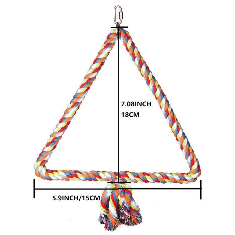 **Specifications:** Size: S: 5.9x7.08inch / 15x18cm M: 9.8x11inch / 25x28cm **Features:** Helps relieve cage stress, boredom, and related feather picking. You have the freedom to twist and bend the comfy perch into your own creative shapes or use it with triangle shape. This Rope Perch for Bird auxiliary with steel wire and coated a layer of cotton rope, therefore it is extremely durable and sturdy. This is a super cute long spiral and colorful perch for your bird, it iswell made and tightly woven, Depending on length you can create loops, curves, and other interesting shapes. **Package Includes:** 1 x Bird Rope Hanging Toy **Notes:** 1\. Please allow 1-3cm error due to manual measurement. Thanks for your understanding. 2\. Monitors are not calibrated same, item color displayed in photos may be showing slightly different from the real object. Please take the real one as standard.