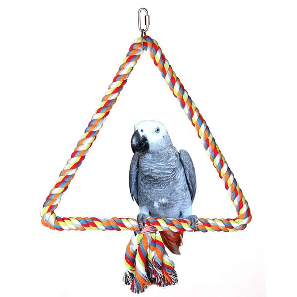 Hypeety Birds Rope Triangle Perch Adjustable Parrot Cage Stand Chewing Swing Toy Ropes for Small Medium Parrot Spiral Rope Cage (S:5.9 * 7.08inch)