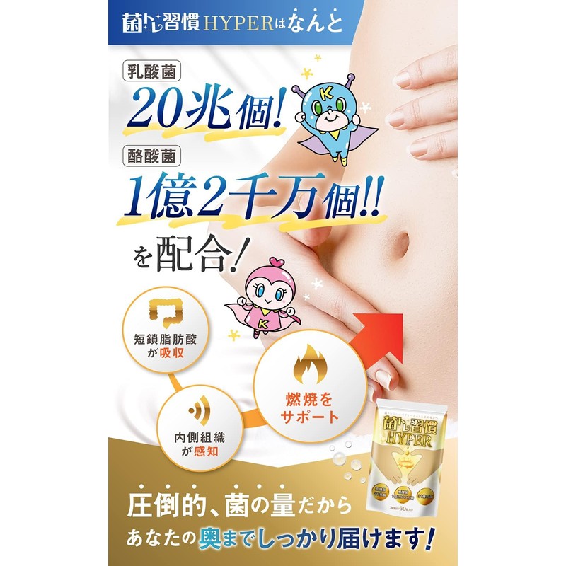 菌トレ習慣 HYPER 乳酸菌 20兆個 酪酸菌 オリゴ糖 ラクトフェリン 炭 サプリメント 30日 2個セット