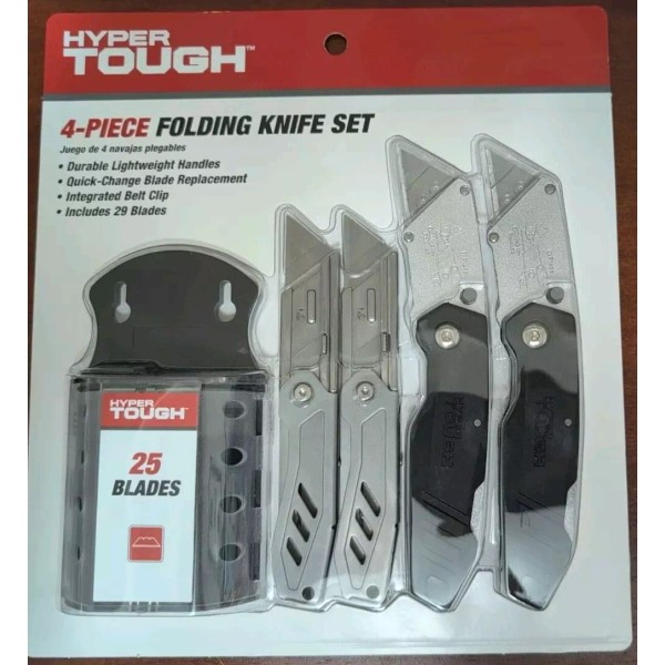 Hyper Tough 4-Piece Folding Utility Knife Set +25 Blades Brand New & Free Ship