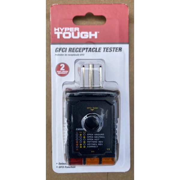 The Hyper Tough GFCI Receptacle Outlet Tester is a portable electrical tester designed for convenience and reliability. Made from durable polycarbonate material, this black outlet tester from the trusted brand Hyper Tough is lightweight at 1.8 oz, making it easy to carry and use on-the-go. With its compact size and GFCI outlet testing capabilities, this model TD35091B is a versatile tool for ensuring electrical safety in your home or workshop. Made in China, this unit is a must-have for any DIY enthusiast or professional electrician.