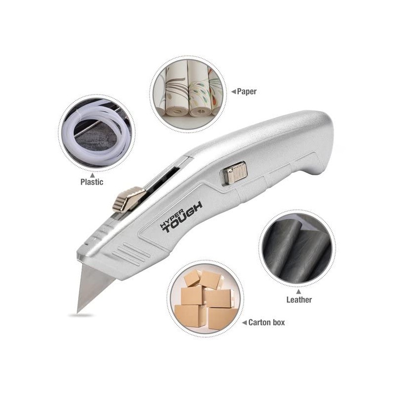 Hyper Tough QUICK-OPEN RETRACTABLE UTILITY KNIFE + 3 BLADES HQ ALUMINUM FRAME