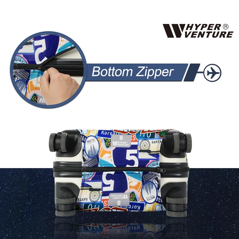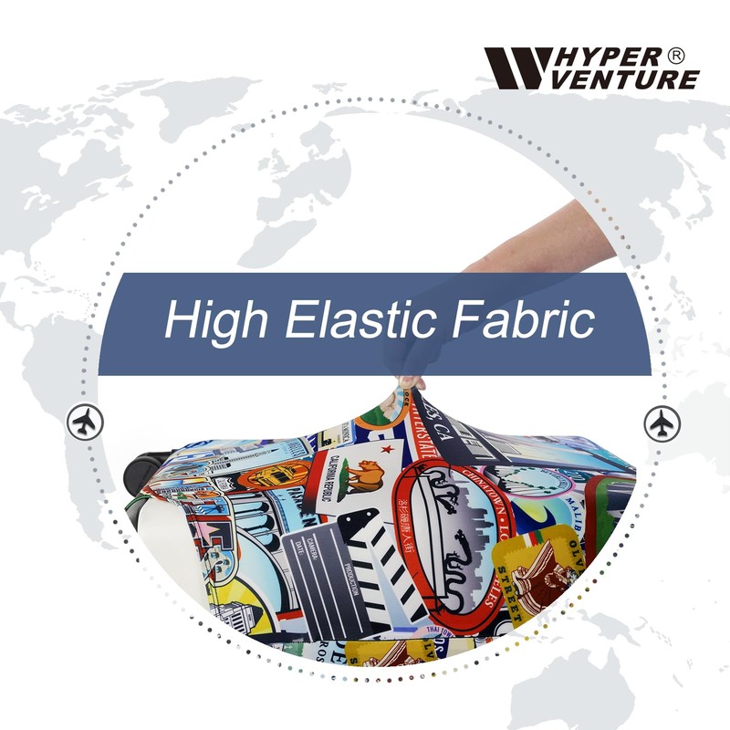 - HYEPR VENTURE luggage cover is made of 300 grams of elastic material, 15% spandex and 85% polyester fiber, designed to offer superior protection against scratches, dirt, and spills. This ensures your suitcase remains unblemished throughout your journey.