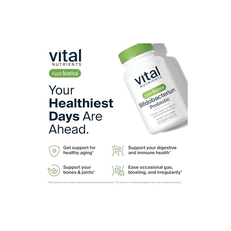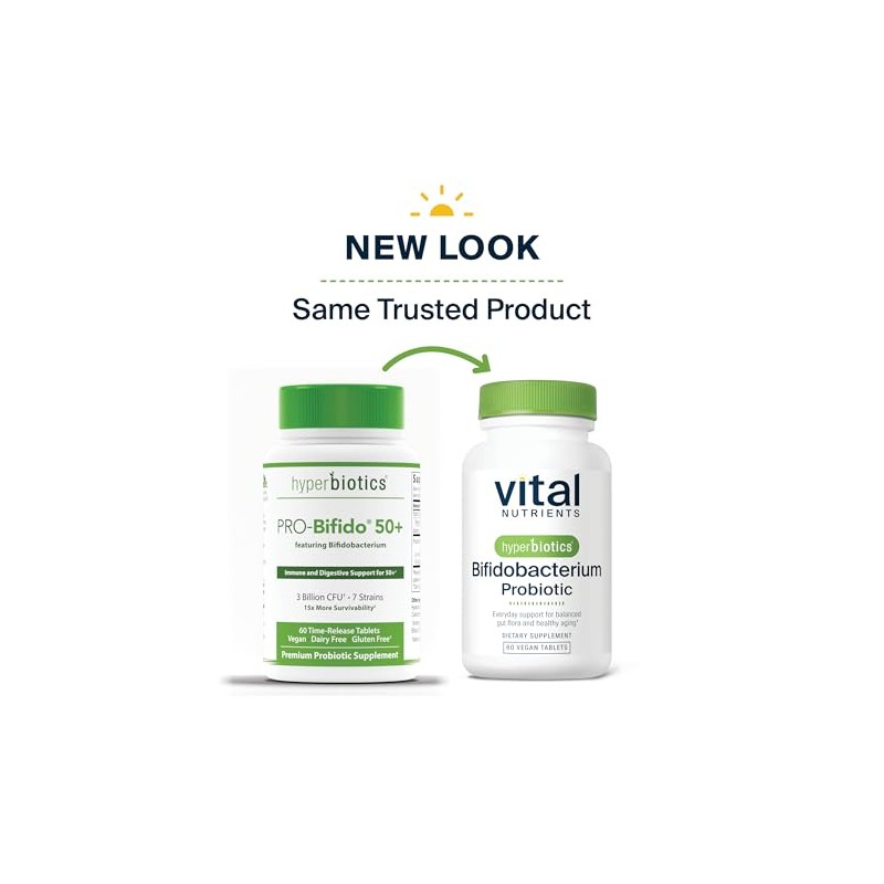Hyperbiotics Hyperbiotics Vital Nutrients Bifidobacterium Probiotic | 7 Targeted Strains | Supports Immune and Digestive Health for Older Adults | Shelf-Stable | Vegan | 60 Tablets