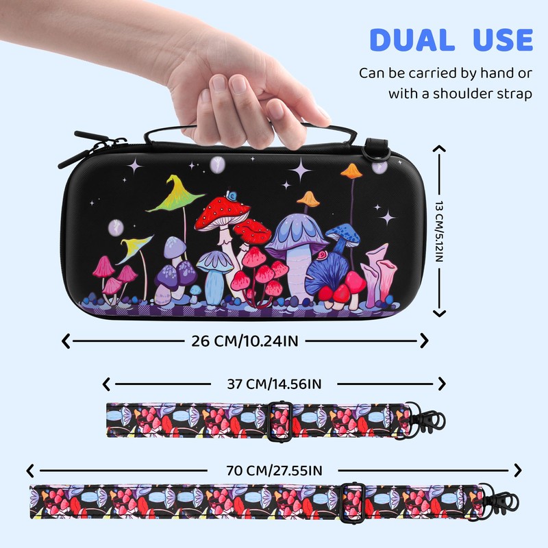 • 🍄【Suitable for travel】Lovely mushroom switch oled accessories bundle, light and comfortable. Equipped with adjustable shoulder strap, easy to carry when traveling, can also be placed in a backpack or travel bag. HYPERCASE is committed to providing long-term friendly service to every customer, if you are not satisfied with our products or services, please feel free to contact us, we will immediately give you a reasonable solution.