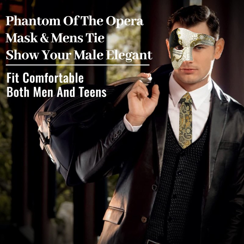 HyperFun Phantom of The Opera Mask and Silk Necktie Set - Venetian Half Face ...