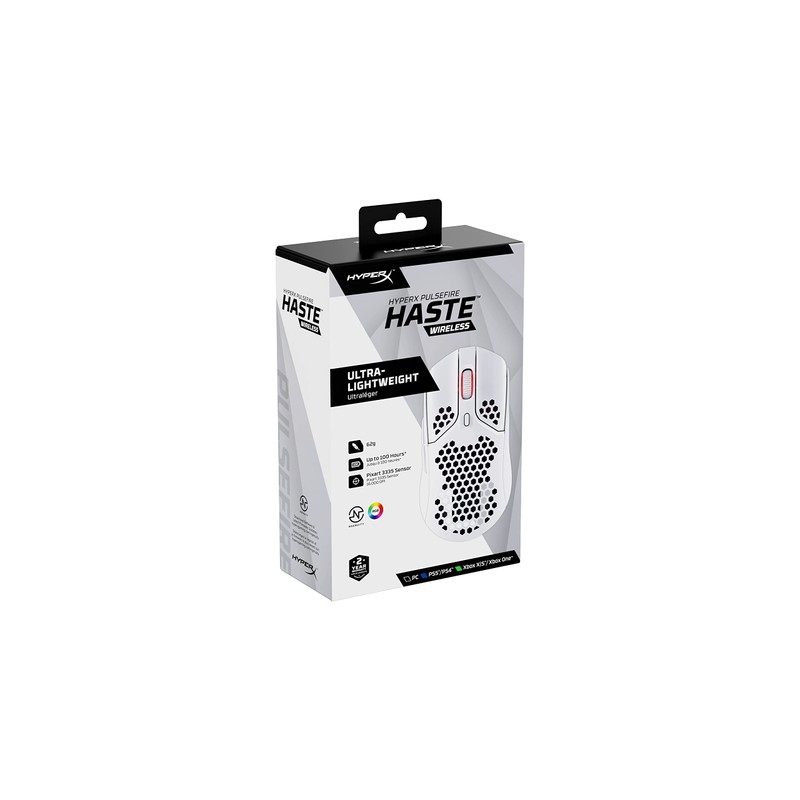 HyperX 4P5D8AA Pulsefire Haste Wireless Gaming Mouse for Gamers Ultra Light Hex Shell Design 62g White