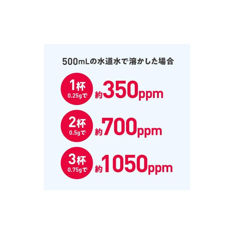 - Approximately 500 ppm per 16.9 fl oz (0.355 g) of powder in tap water