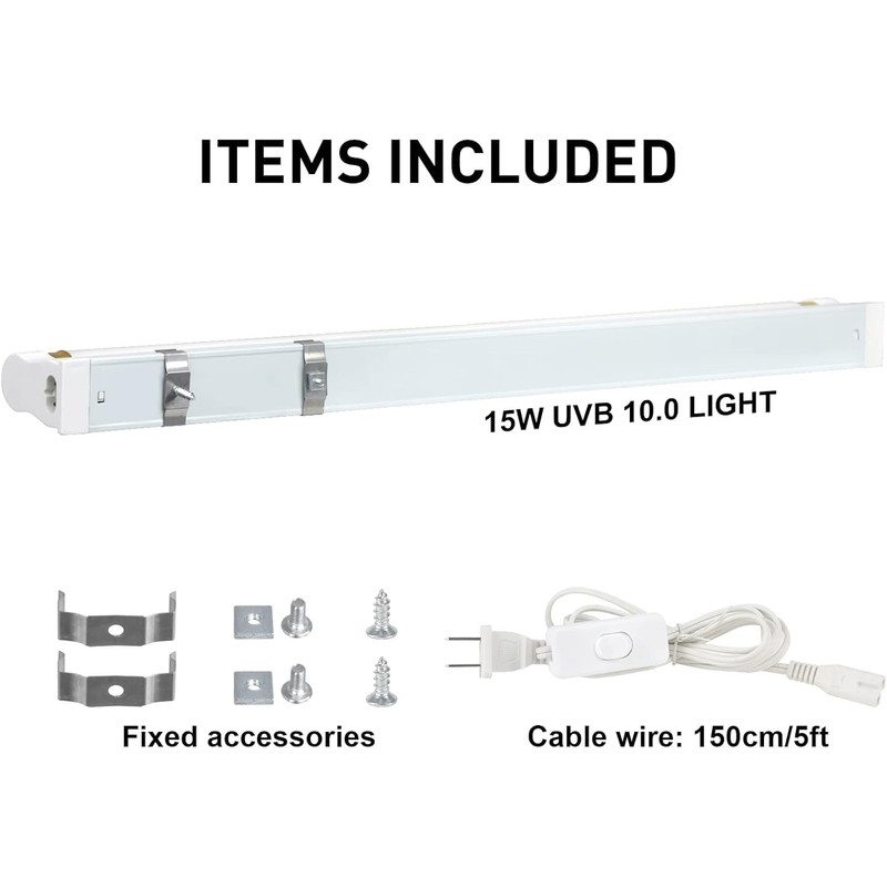 Hypool T8 Strip UVB UVA Reptile Lighting Fixture with 18-Inch 15 Watt UVB 10.0 Fluorescent Bulb Combo Kit 10-Percent UVB Desert Pet Habitat Light for Reptiles Amphibian-1 Pack