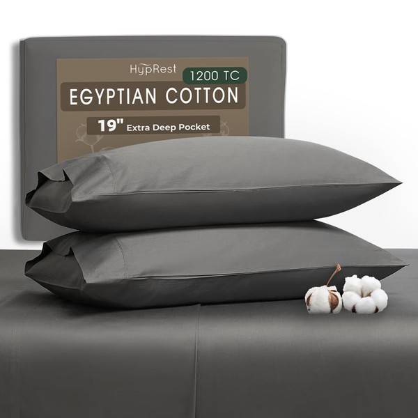 HYPREST 100% Egyptian Cotton Queen Sheets - 1200 Thread Count Long Staple Cotton,19 Inch Queen Sheets Deep Pocket, Sateen Weave, Silky Soft, Durable & Hypoallergenic - 5 Star Hotel Luxury Bed Sheets