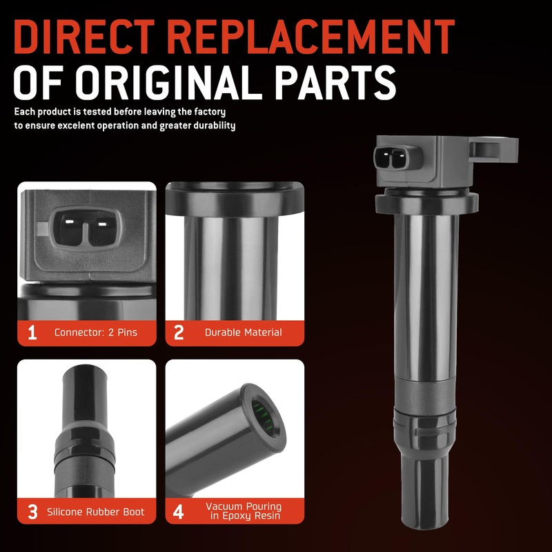 - HIGH PERFORMANCE IGNITION COILS: Our ignition coils are made of copper wire imported from Germany and higher coil turns, capable of generating 35,000+ volts, resulting in more complete combustion, better fuel economy, more power and lower emissions