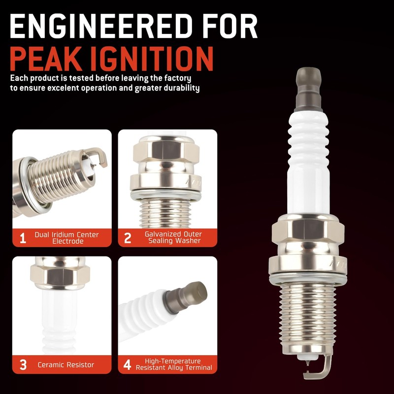- IRIDIUM SPARK PLUG FEATURES: Our spark plugs are made of high-quality iridium center electrodes for fast response, higher fuel efficiency, and long-lasting wear resistance. They are effective in solving cold start problems and idle shaking problems.