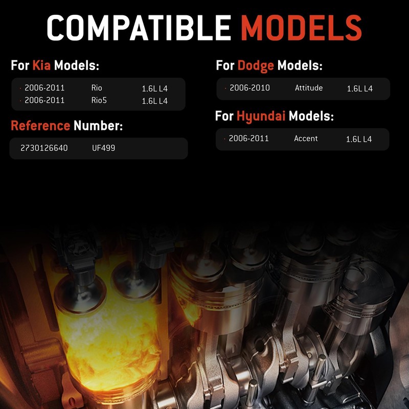 - COMPATIBLE VEHICLE: Ignition coil pack spark plugs fit for 2006-2010 Dodge Attitude 1.6L L4, 2006-2011 Hyundai Accent 1.6L L4, 2006-2011 Kia Rio 1.6L L4, 2006-2011 Kia Rio5 1.6L L4