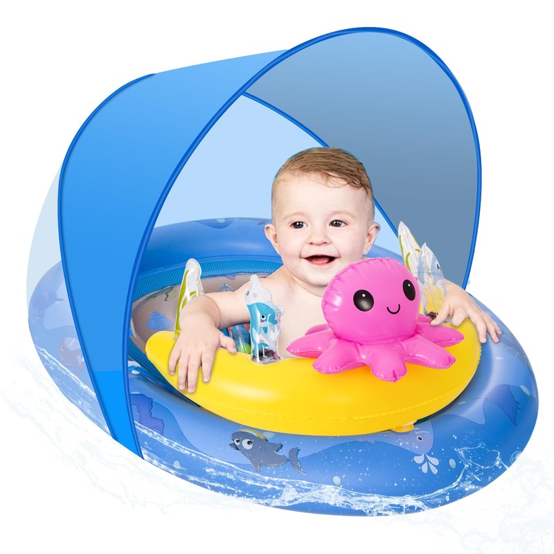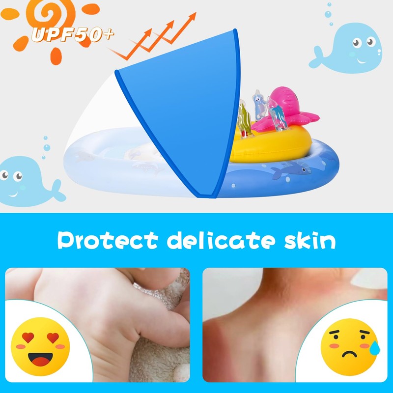 - 【Sun Protection Canopy】The Infant pool float is equipped with a 0-120 degree adjustable sun canopy that provides UPF 50+sunscreen effect and protects the baby's face from sunlight