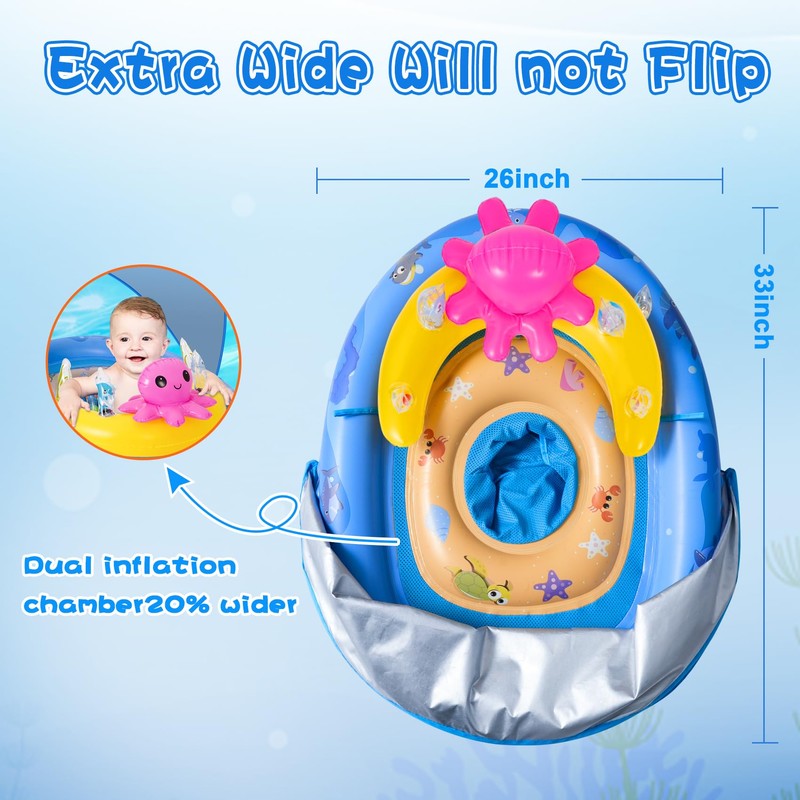 - 【Ultimate Safety】The dual air chambers and side widening design provide excellent buoyancy and stability. The reticulated area between the two chambers of the baby floatie provides a safe playing area