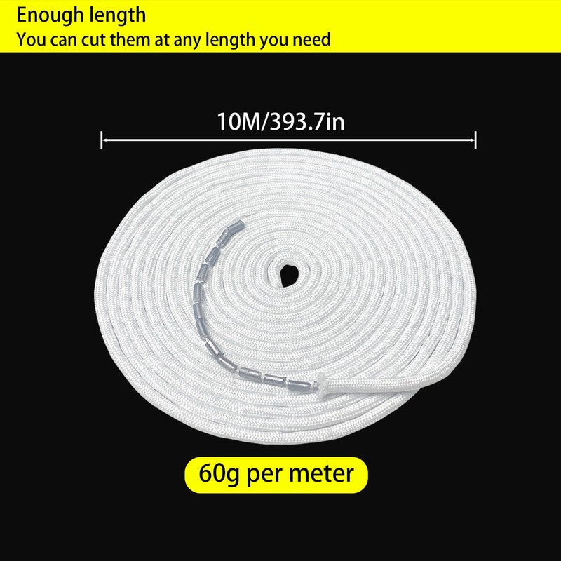 - High-quality material: lead chain for curtains consists of a lead yarn inside and one outside made of polyester. Not easy to tear or fall off, strong and durable. No shrinkage of the lead cord after washing, 100% polyester in white. Safe, reusable and practical.