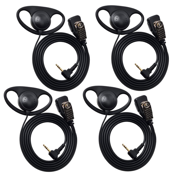 HYS Talkabout 2.5mm Earpiece D Ring Headset Compatible with Motorola TLKR T6 T7 T8 T9 T60 T82 T82 Extreme T92 2 Way Radio(4 Pack)