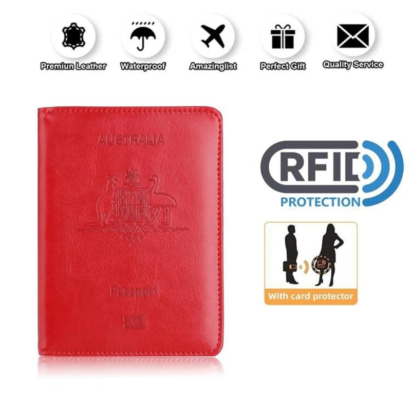 Hysgscwd 2Pcs AU Passport Holder Travel Cover Wallet Case, PU Leather Passport Travel Wallet Holder with RFID Blocking, ID Credit Cards Cover Case, Travel Documents Organizer with Multiple Slots