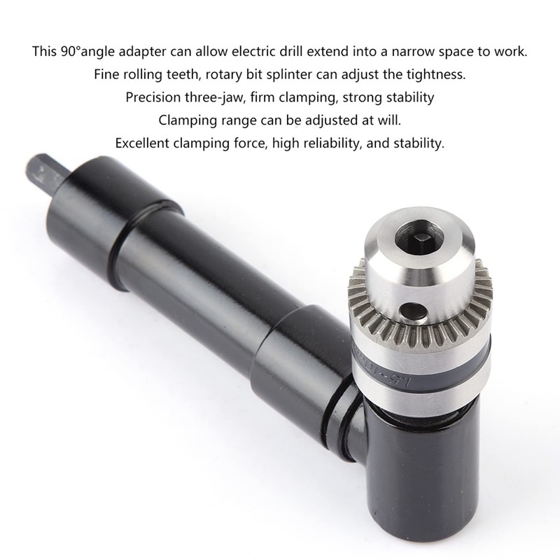 - STABLE PERFORMANCE: The 90 ° angle adapter is designed with three jaws, which has firm clamping and strong stability. The clamping range can be adjusted at will, excellent clamping force and high reliability and stability.