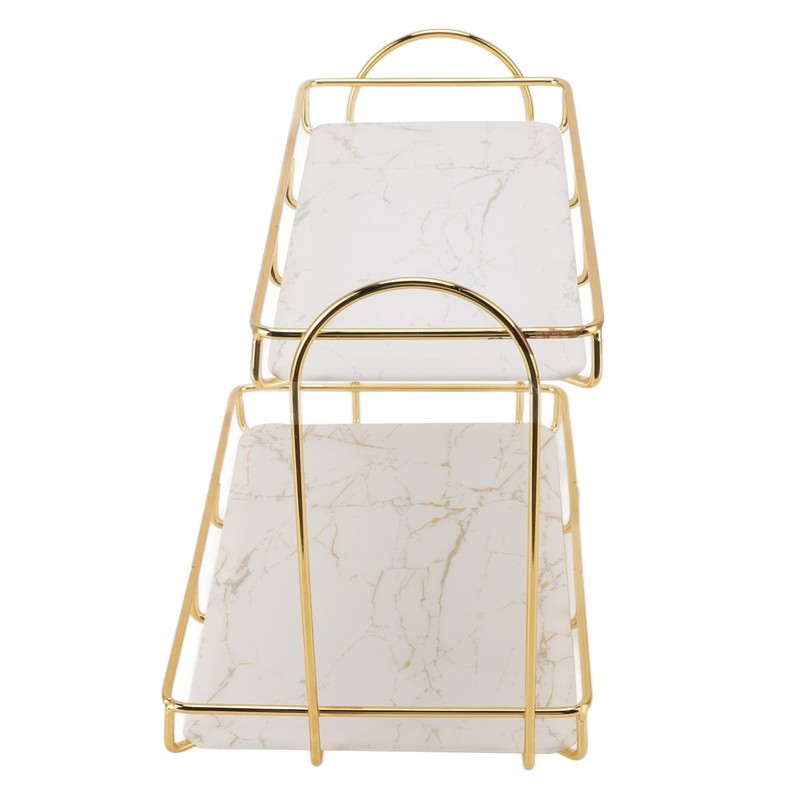4. [Sturdy and Lasting] This storage shelf is made of iron, the solid structure ensures that it will not easily overturn or fall. The surface is coated with gold coating, which effectively prevents and ensures service life.