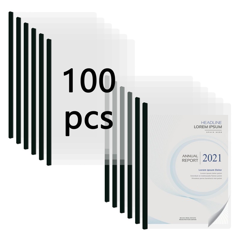 - PACKAGE INCLUDES: 100 pack of clear report covers with black sliding bars, sufficient quantity will meet your different using and replacement demands to collect and classify different documents more orderly. They help keep your documents organized and protect them from spills and stains.