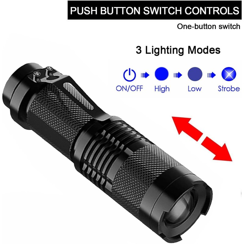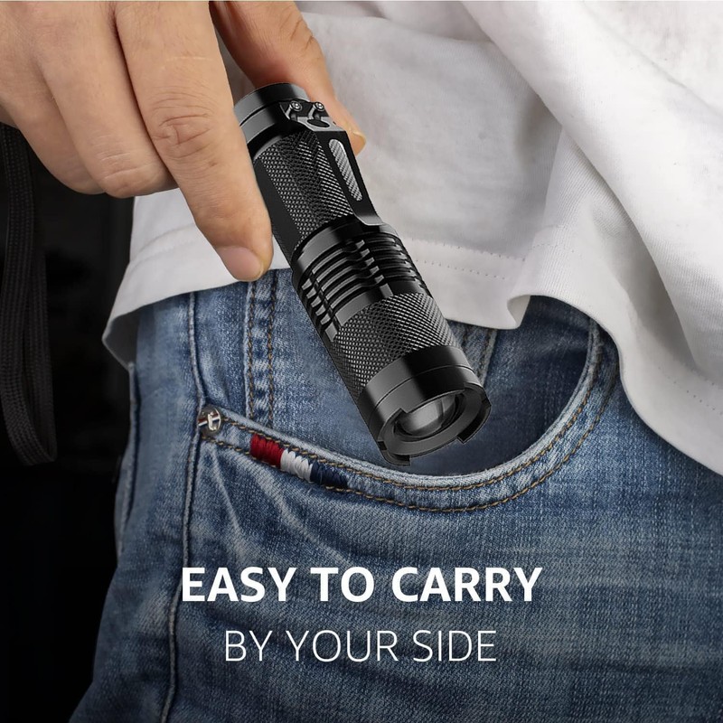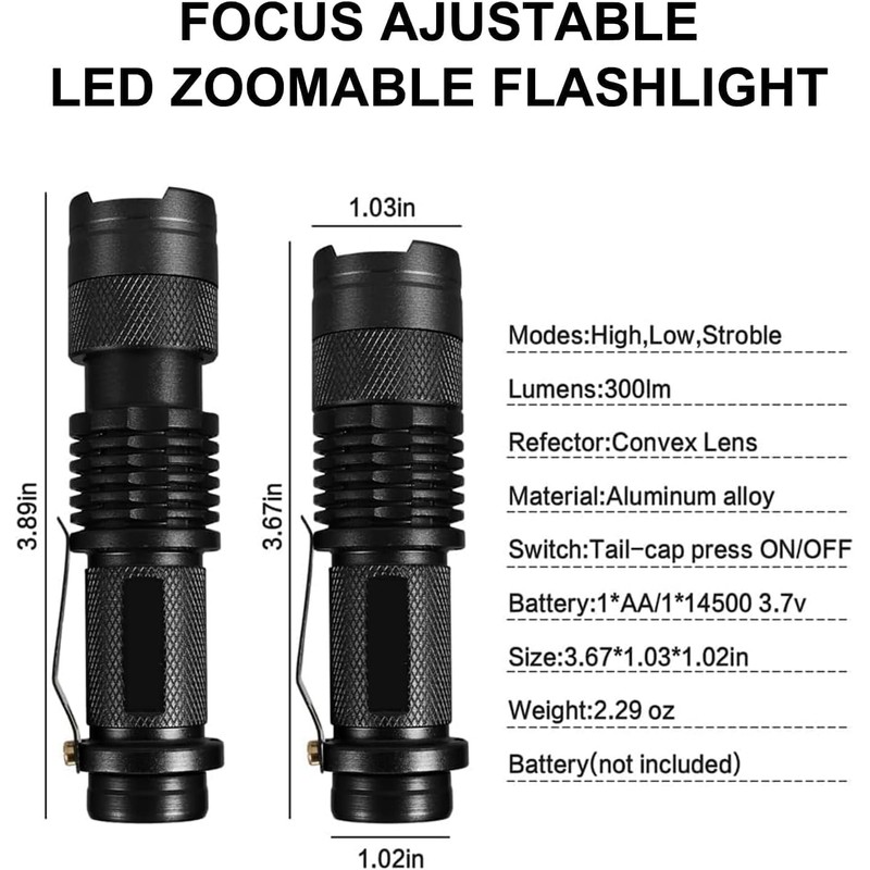 - 【High quality durable 】The LED Flashlight body is aluminum alloy casing with excellent hardness, wear resistance and drop resistance. It's also a zoomable led light torch,adjustable focus range for different usage.