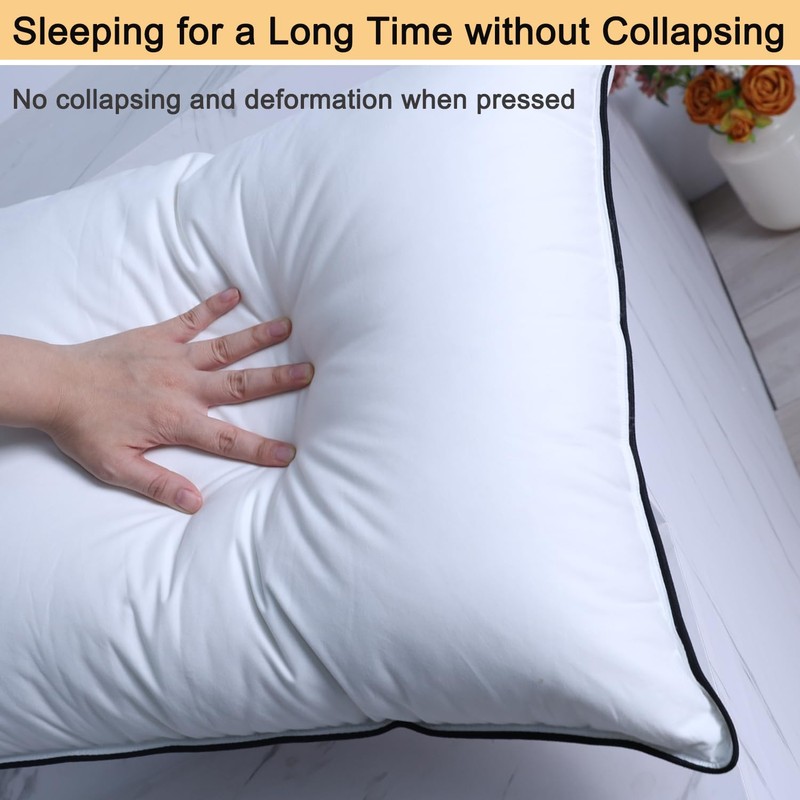 - HARD-WEARING DESIGN AND BEST GIFT: Our down fiber pillow are Double-stitched and expertly tailored, offers signature black piping ensuring both a luxurious appearance and preventing any down fiber from escaping. A great gift choice for family and friends