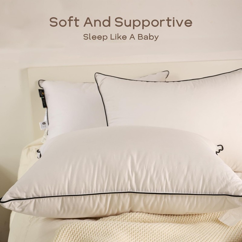 - HARD-WEARING DESIGN and BEST GIFT- Our down pillows are Double-stitched and expertly tailored, offers signature black piping ensuring both a luxurious appearance and preventing any down from escaping. A great gift choice for family and friends