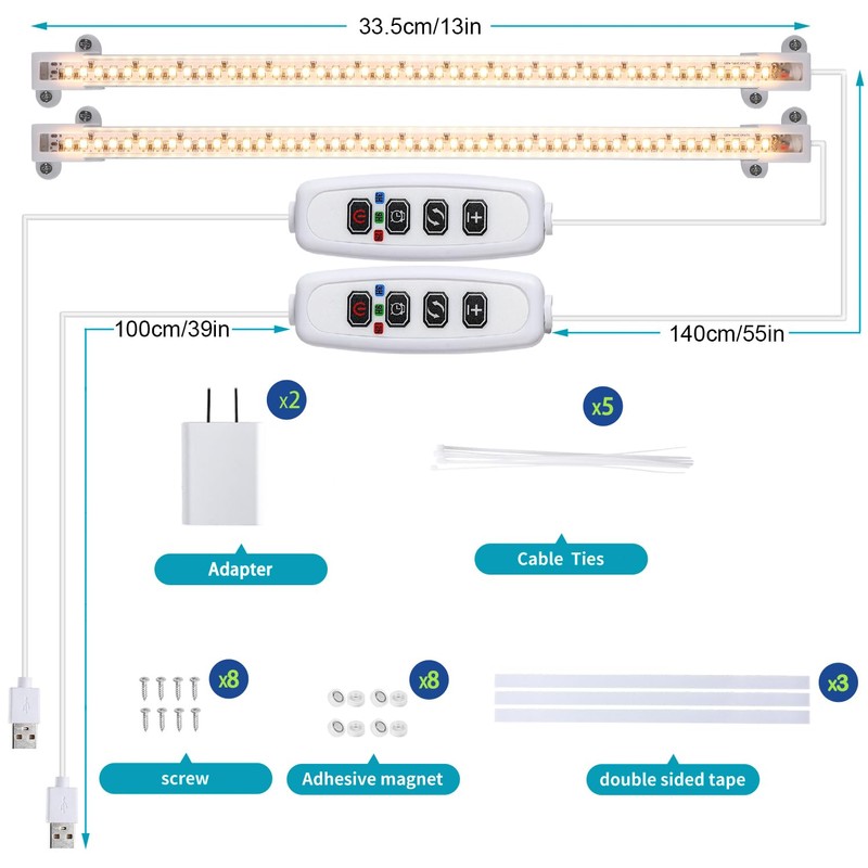 - Material Safety & Easy InstallationAll aluminum material, strong corrosion resistance, hard to melt. The grow light pack comes with screws, ties, double-sided tapes and magnets to provide four mounting options. Compact design fits for various fixtures and surfaces. The power cord is 96 inches long for easy using in office,indoor,plant shelf,greenhouse etc.