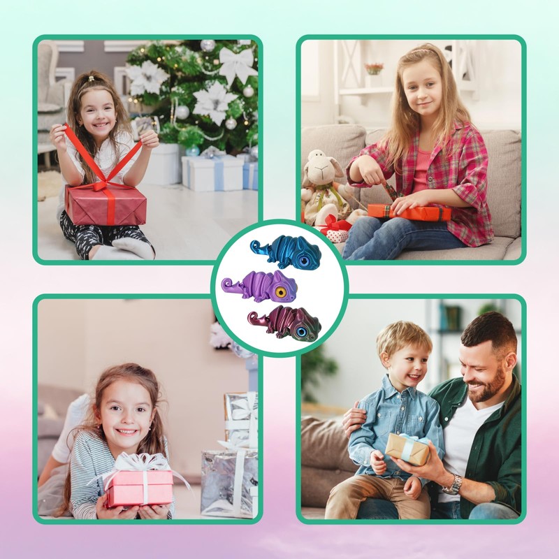 HYZSHL 3PCS 3D Tiere Chamäleon, Eidechse Spielzeug, Flexibel Bewegliche 3D Drucke, Ideal Für Büro, Schule, Zuhause Und Geschenke, Hochwertige Materialien