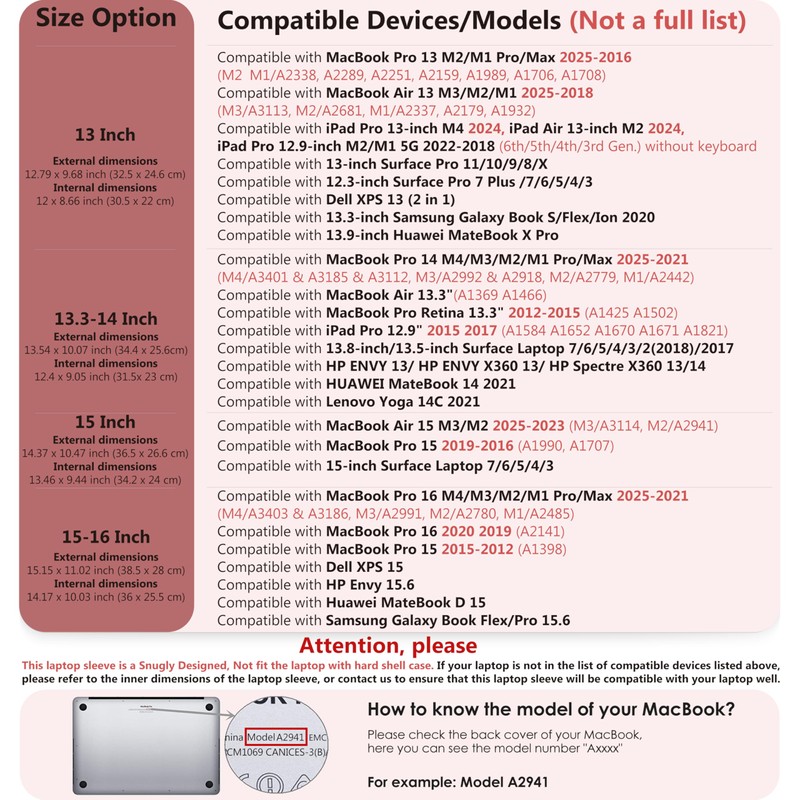 - It is perfectly compatible with MacBook Pro 14 M4/M3/M2/M1 Pro/Max 2025 2024 2023 2022 2021 (A3401, A3185, A3112, A2992, A2918, A2779, A2442), MacBook Air 13 2017-2012 (A1369, A1466), MacBook Pro 13 2015-2012 (A1425, A1502); Also compatible with 13.8-inch Surface Laptop 7, 13.5-inch Surface Laptop 6/5/4/3/2 (2018)/2017, Huawei MateBook 14 2021, iPad Pro 12.9" 2nd/1st Gen. 2017 2015, HP Envy 13/HP Envy X360 13, HP Spectre X360 13/14, Lenovo Yoga 14C 2021, Lenovo Yoga 720/910/920, etc.