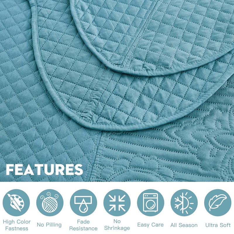 HZ & HY Oversized King Bedspread, Ultrasonic Coverlet Bedding Set, Lightweight Thin Comforter, Reversible, 5 Piece, 100% Microfiber, King/Cal King, Lagoon