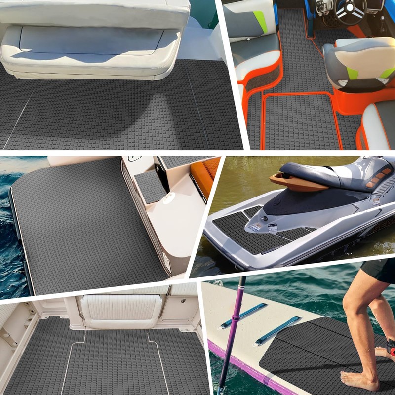• Our boat flooring mat made of EVA foam material,sound-absorbing and shock-absorbing,easy to maintain, and can be cleaned under high pressure. provide a non-slip surface for your boat in wet and dry conditions. Closed-cell structure, non-absorbent, moisture-proof, and waterproof.