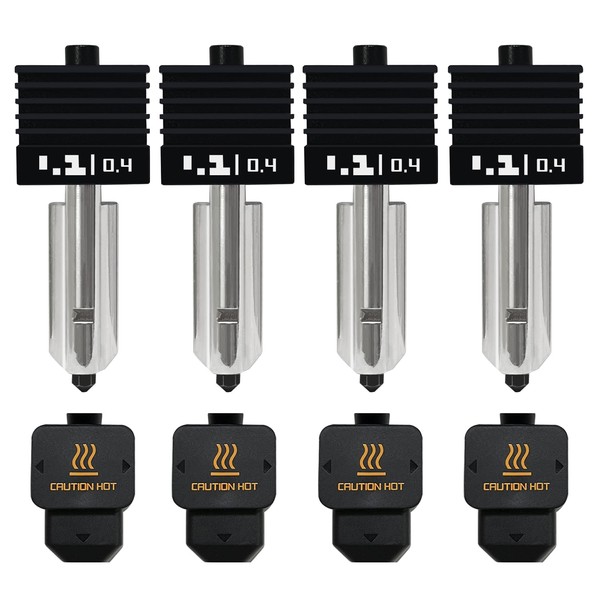 HzdaDeve 4 Pack 0.4MM H2D Combo Hotend Print Head Hot End Kit Extruder Upgrade High-Temperature Hardened Steel Nozzle Heating Rod Silicone Cover for Bambu Lab H2D Combo/A1/A1 Mini 3D Printer