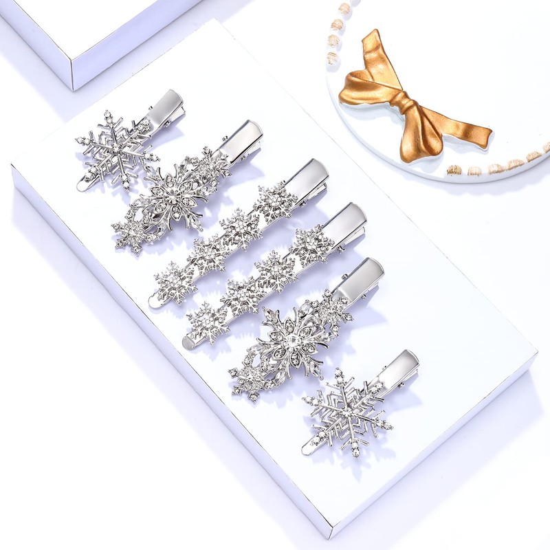 - En esta temporada nevada, trae lo más fresco y el estilo para convertirse en la princesa de nieve con estos brillantes clips de pelo Snwoflake con diamantes de imitación