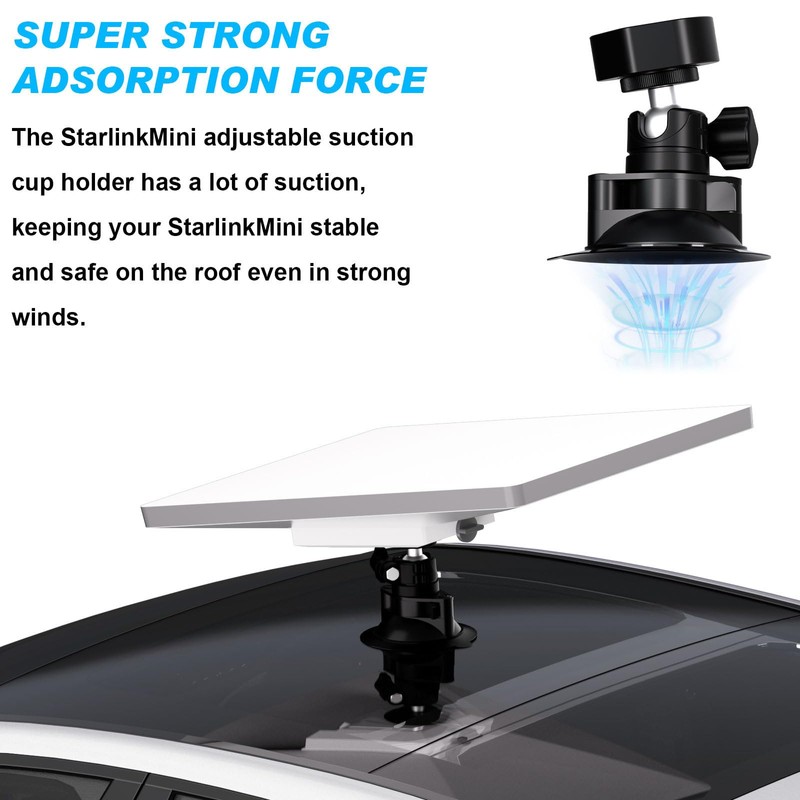 - 360° Adjustable Mount: 360° adjustable mount Starlink Mini car mount allows you to optimize the Starlink Mini signal for the best performance no matter where you are. Say goodbye to weak signals and frustrating placement difficulties.