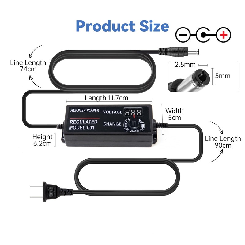 - 【Input & Output】INPUT:AC 100-240V,50-60Hz;Output:DC 3V-24V Adjustable Continuous,Max 3A 72W