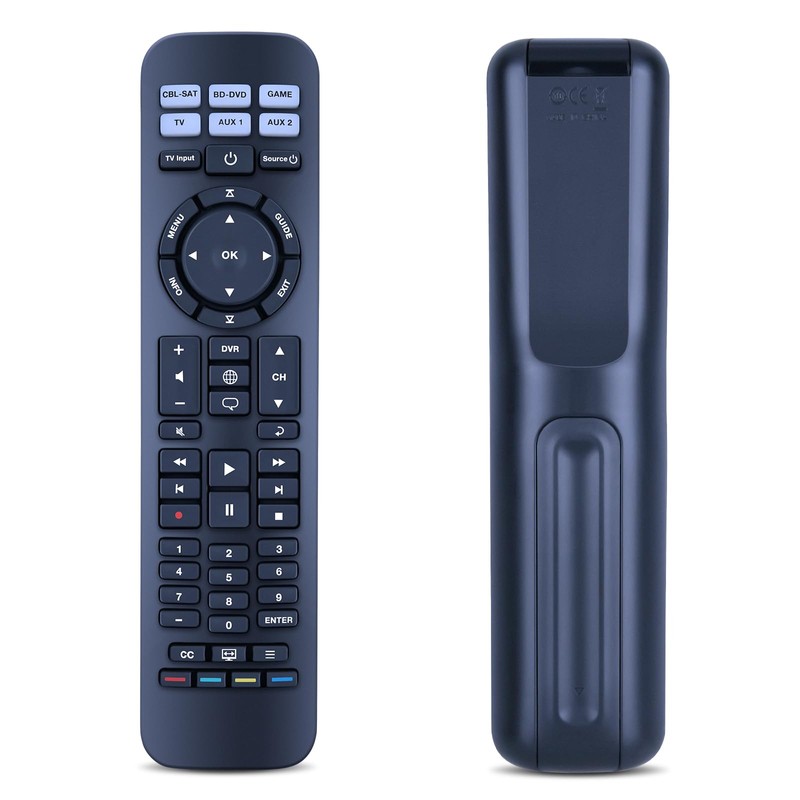 - 【Pairing】1: input code ①Press one of the device button till all device lamps light then release it②After input code, press the button VOL+③Press MENU button under the TV mode, press GUIDE button under the CABLE/DVD/BD/GAME mode④ Press EXIT button to exit the setting。2:Customize the power button (make the TV and CBL-SAT power code send one after another) , Press the TV and CAL-SAT button at the same time in 10 seconds, the LED light three times, set successfully. While pressing POWER button, it is sending TV data firstly, then sending the CBL-SAT data. It can be canceled setting by the same method